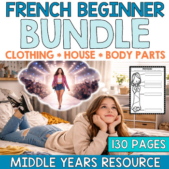 This huge engaging, low prep French beginner curriculum bundle is sure to have all you need to teach French clothing, house and body parts to your middle years Core French and French as a Second Language students. Vocabulary activities, differentiated vocabulary lists with phonetic pronunciation and colorful poster cards, your students will feel confident with these new words in no time. Three interactive notebook templates, student instructions and examples allow for student choice when recording their words. Once students have practiced the vocabulary words, the rigorous, classroom tested speaking games could be used to reinforce the vocab with a competitive spice. Five popular speaking games are included that have been classroom tested and approved. Some of my students would ask to play them repeatedly. Also, French project ideas and planning sheets are also included, teacher notes pages for tips and tricks to make these units a success! Teaching French is no easy feat. This curriculum bundle has all you need to make French fun and engaging for your upper elementary Grades 5-8 students.