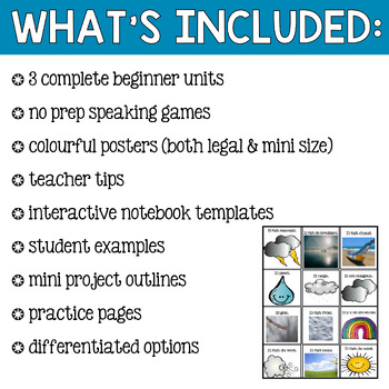 Looking for a way to teach beginner concepts to your middle school Core French and FSL students? This large French Beginner Curriculum Bundle has all you need to engage students in learning French feelings & emotions, weather and school through vocabulary activities, games & projects. These activities are highly engaging, low prep, classroom tested and approved!