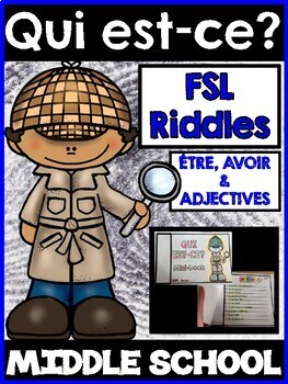 This Core French Riddle Project is an engaging way for middle school French as a Second Language students to practice être, avoir and adjectives. Students practice their detective skills by writing and solving riddles to try and stump their classmates using their knowledge of the verbs être and avoir by creating mini-books. Included in this product are 16 riddles that students try to solve using their prior knowledge of the French language. Once students have solved their riddles, they can then take this knowledge and create their own to stump their classmates. They will practice forming proper sentences with the correctly conjugated verbs (être and avoir) and will add in adjectives where needed. Mini book templates are included for their detective journal as well as for their riddle creation. This product allows for differentiation, cooperative learning and creative thinking all the while being engaging, low prep, classroom tested and approved. Simply print and teach!