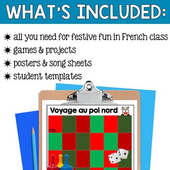 Are you looking for an engaging bundle of no prep activities for Core French or French as a Second Language middle school students leading up to the Christmas winter break? This bundle will not disappoint! Included you will find Christmas posters and speaking games, mini projects (design your own scene or ugly sweater), vocabulary activities, Christmas carol lyrics and follow up activities, as well as a mini book to practice winter clothing, date, weather and festive words. Simply print and teach. This bundle is classroom tested and approved!