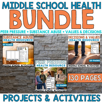 Are you looking for a way to teach the difficult topic of substance abuse, peer pressure and healthy decision making to middle school students? This low prep, project based unit is what you need! Upper elementary students will learn about topics that can be tough to tackle as an educator, but these engaging and interactive activities will not disappoint. Role play scenarios, small group activities, foldables for interactive notebooks, many project ideas, picture book read aloud recommendations and a movie response. Simply print and teach! This unit is classroom tested and approved.